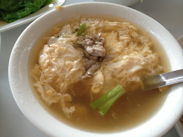 這是另外一個招牌菜:鴨蛋湯,特製湯頭加上一點點肉絲跟蔥段,好吃!每個來吃蝦仁飯的客人幾乎都會點的。