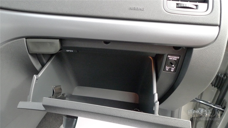 | 置物箱,那個「OPEN」是開啟冰箱冷氣的開關,可以把飲料放進去,利用車子的冷氣來吹涼。台灣市售的Yeti 1.2有兩個冰箱,一個是在右前座置物箱,另外一個在中央扶手裡面,有個勾勾打開可以吹冷氣出來。 |