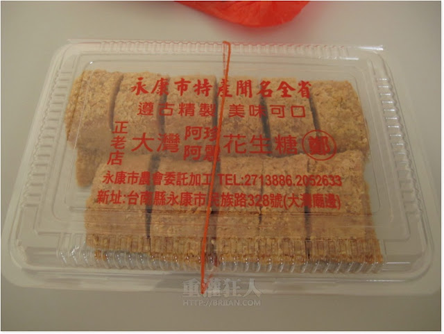 Posted on 2012-12-112019-06-24 by Orz 網摘 [台南] 大灣 阿珍阿麗花生糖 地址:台南市永康區民族路328號(大灣廟邊)我買一斤130元台幣,整整一盒便當盒,下圖裡面是已經吃了5塊的…它的口味有很多種,我買這個是最軟、最適合老人吃、最不黏牙的那種…